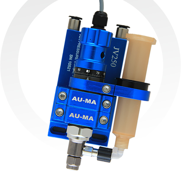 JV250噴射閥為高階噴射出膠閥高速高黏度適合非接觸噴塗,免除Z軸上下及點膠針頭與工件間隙的困擾而大幅提升生產效率。合理化的設計以降低耗材成本及易於維護保養,內部軸心及軸封使用耐磨耗材料,不因高頻作動減低使用壽命大幅減少因膠閥保養膠的怠機時間。